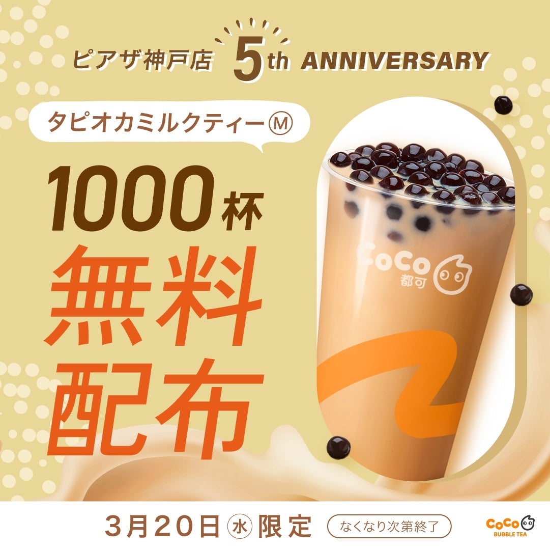 CoCo都可 公式アプリをダウンロードいただいたお客様へ「タピオカミルクティー(Mサイズ)」をプレゼントいたします。