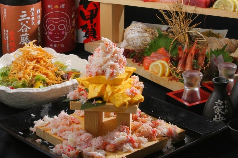 「北海道海鮮にほんいち」では北海道直送の鮮魚のほかにも、北海道の魅力を堪能できる創作料理を多数ご用意しております。紅ズワイガニをふんだんにかけて楽しむ出汁巻玉子や、北海道厚岸産の生牡蠣など、大阪にいながら北海道をお楽しみいただける逸品をぜひお楽しみください。