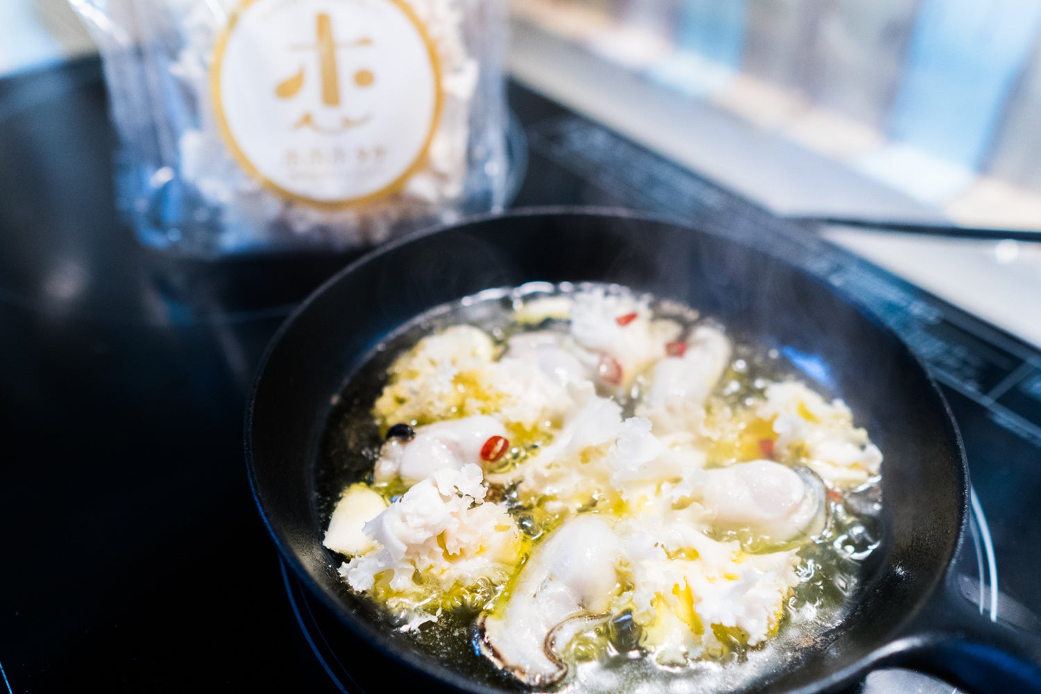 大井川電機と河端水産は2021年から、アヒージョをイメージした「ホホホタケ」と牡蠣のセット販売を開始。コリコリした食感と出汁が魅力の「ホホホタケ」と能登牡蠣のアヒージョが自宅でも調理できるようなセットになっています。