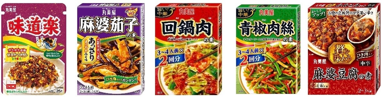 (「味道楽N.P.」、「麻婆茄子の素<あっさりみそ味>」、「旨い!中華 2回分回鍋肉の素」、「旨い!中華 2回分青椒肉絲の素」、「贅を味わう 麻婆豆腐の素<中辛>」各1個 計5個)