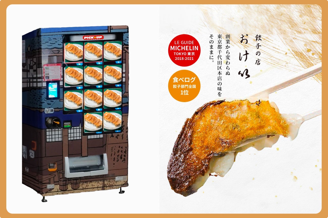 PICK ME UPの自動販売機にて、メディアに多数出演しているこの『おけ以の餃子』をご自宅でも楽しむことができます。