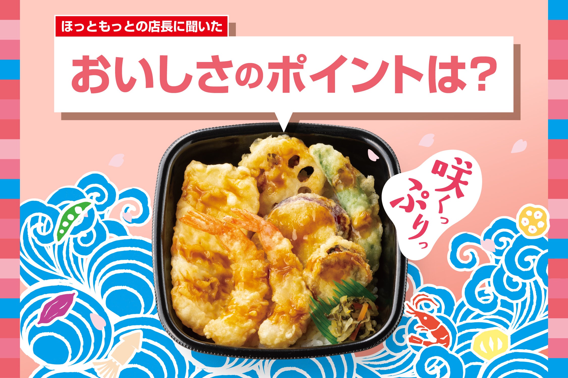 このたび「ほっともっと」では3月13日(水)より販売している『海鮮天丼』のおすすめポイントを全国の店長にアンケート調査いたしました。商品を購入する際には、どんな商品か気になる方も多いのではないでしょうか?店長のおすすめポイントからその美味しさを解明していきます。