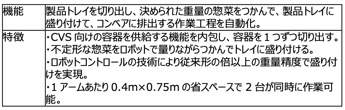■惣菜盛付全工程自動化統合ロボットシステムを開発、現場実装