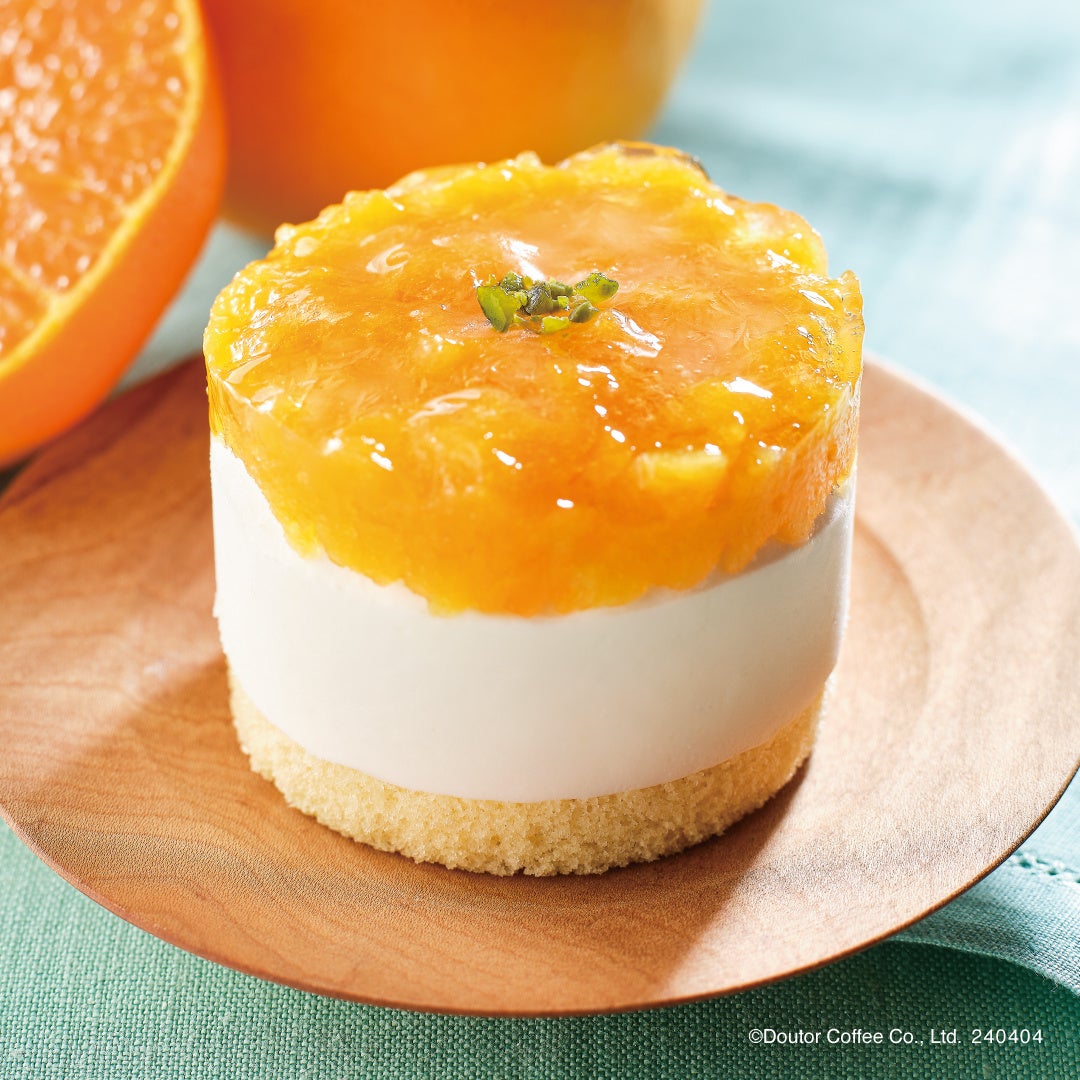 甘みと爽やかさを兼ねそなえたオレンジとチーズ風味のムースが相性抜群なケーキです。さっぱりとしたチーズ風味のムースの中にオレンジソースをしのばせ、食べ進めていくと、とろっとソースが出てくる仕立てにしました。天面にはオレンジのクラッシュゼリーをのせ、瑞々しく夏らしい見た目に仕上げています。