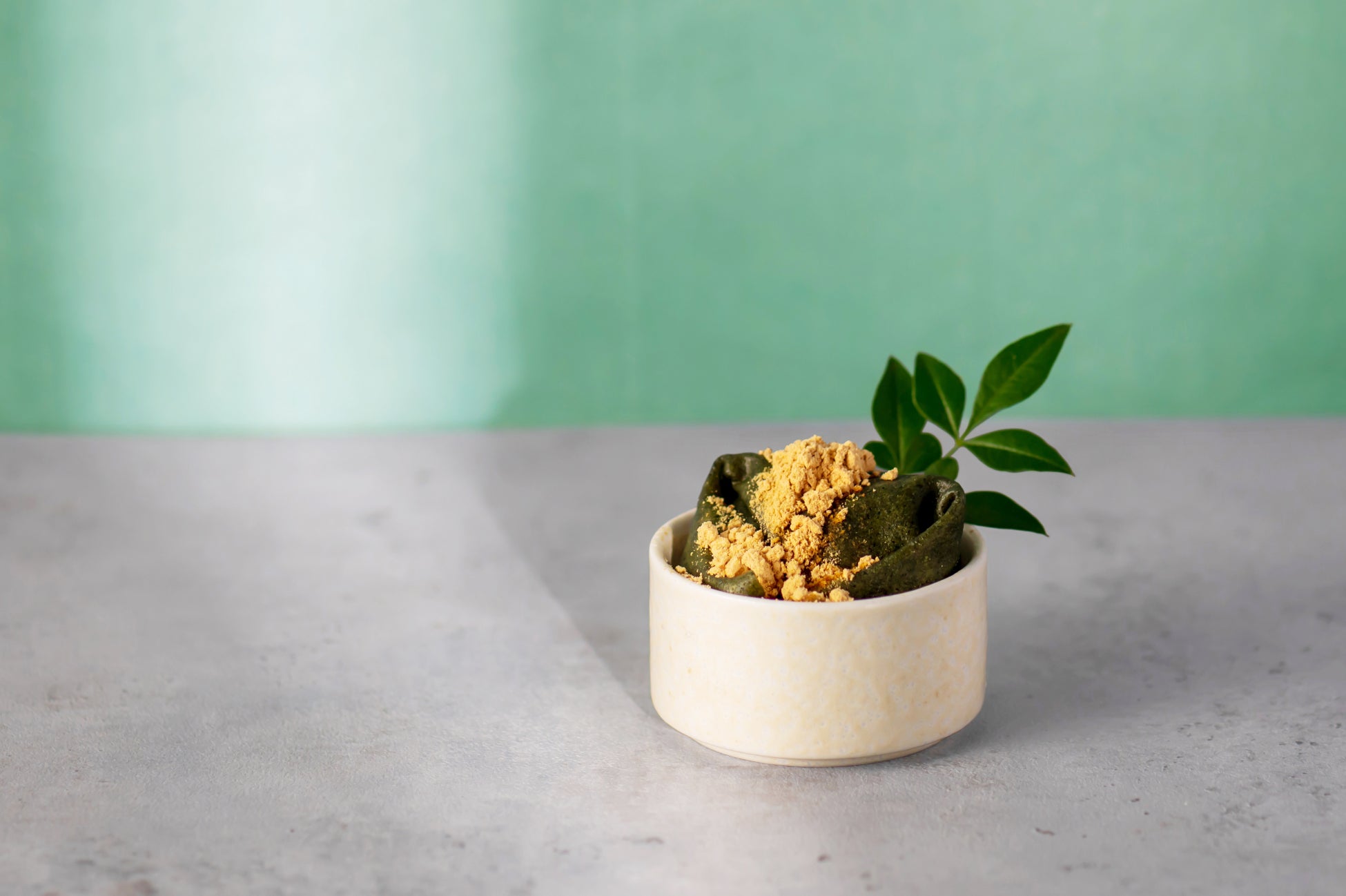 しっとりと焼き上げた抹茶シフォンをよもぎを使用したもっちりとした