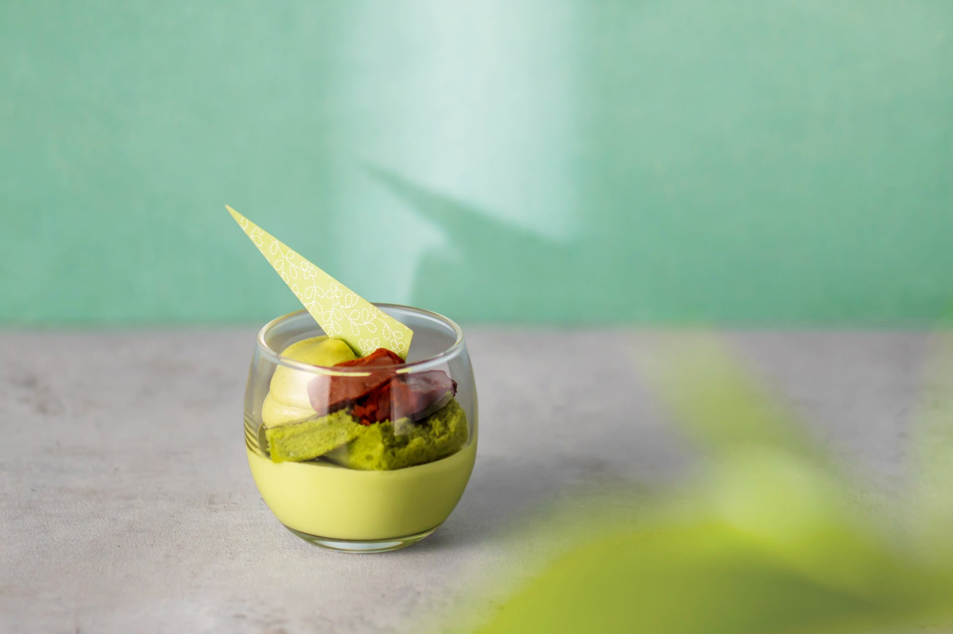 抹茶の香りとほろ苦さを生かし、ティラミス仕立てにしました。マスカルポーネと相性抜群です。