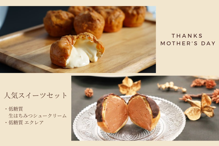 母の日限定 人気スイーツセット「低糖質 生はちみつシュークリーム&エクレア 詰め合わせセット」