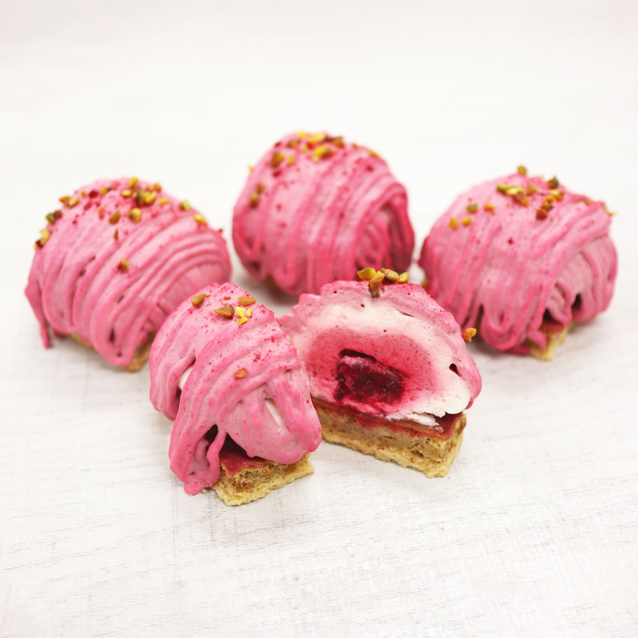 モンブランの中には、木苺を1粒丸々入れ木苺のムースとなめらかな生クリームで纏いました。