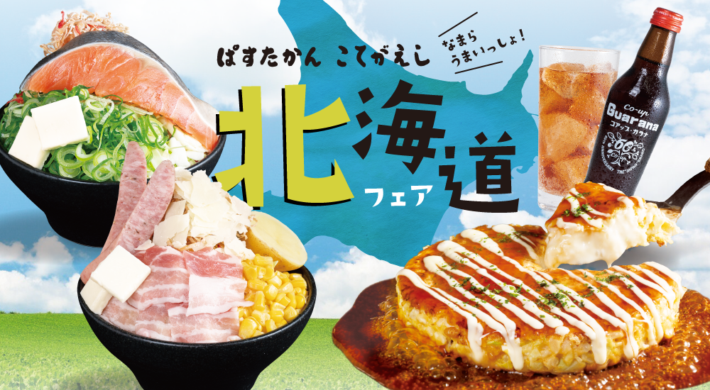 「北海道フェア」 【販売期間】 2024年3月22日(金)~2024年6月上旬予定 ※浦和パルコ店のみ3月29日(金)より販売開始 【販売店舗】 「ぱすたかん」「こてがえし」 ※相模大野ステーションスクエア店では「北海道フェア」を実施いたしません。 ※「もんじゃ焼き」は柏高島屋店にてお取り扱いがございません。 ※「北海道名物ザンギ」は池袋アルパ店、浦和パルコ店にてお取り扱いがございません。 店舗検索はこちらから |