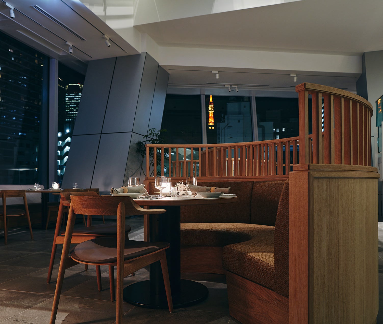天井まである大きな窓から東京の夜景と東京タワーを見ながらお食事をお楽しみいただけます。