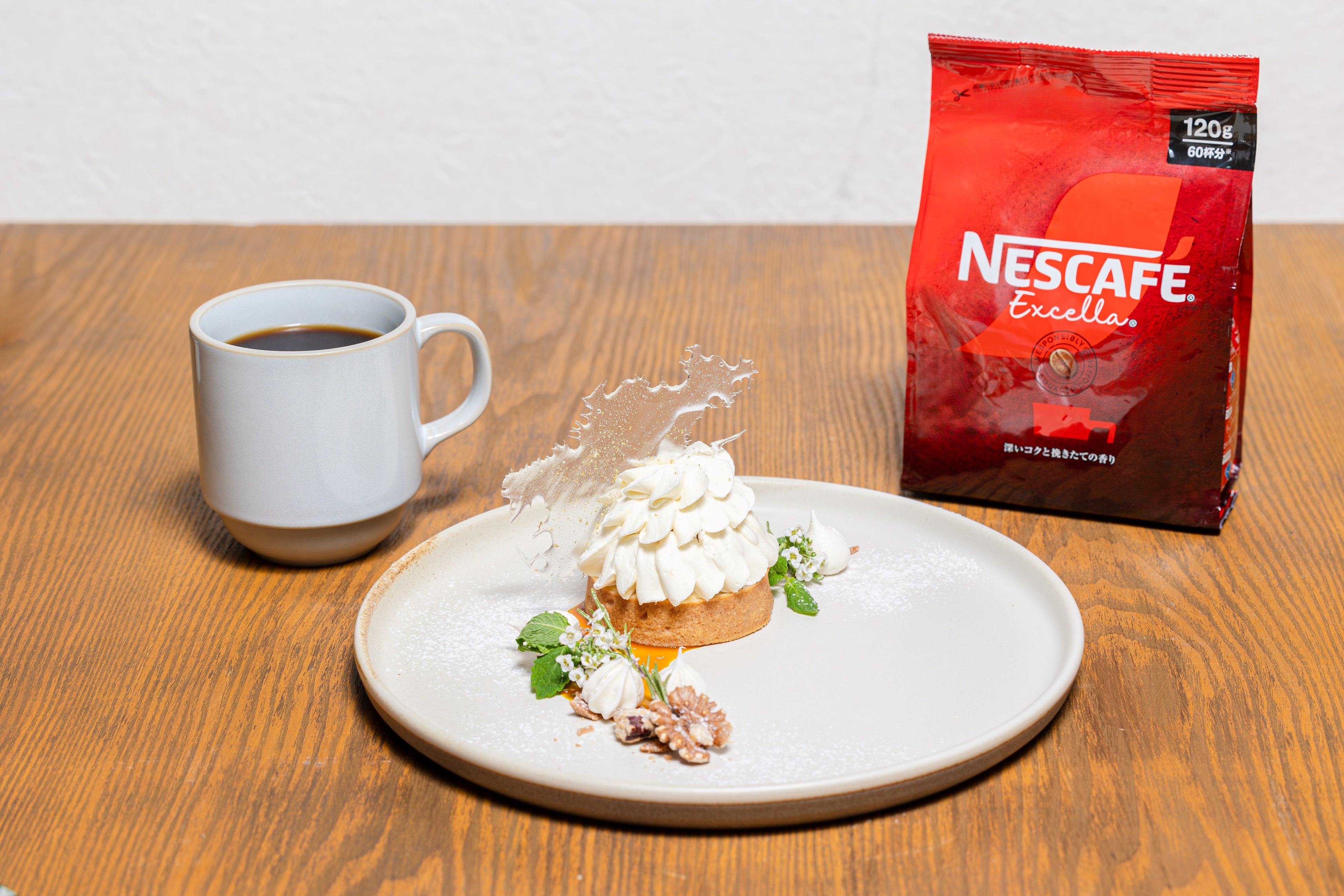 特長:ホイップクリームでコーティングしたタルト。アクセントにレモンの風味が楽しめる。「ネスカフェ エクセラ」の後味で残る深いコクと、クリームの調和を楽しめる。