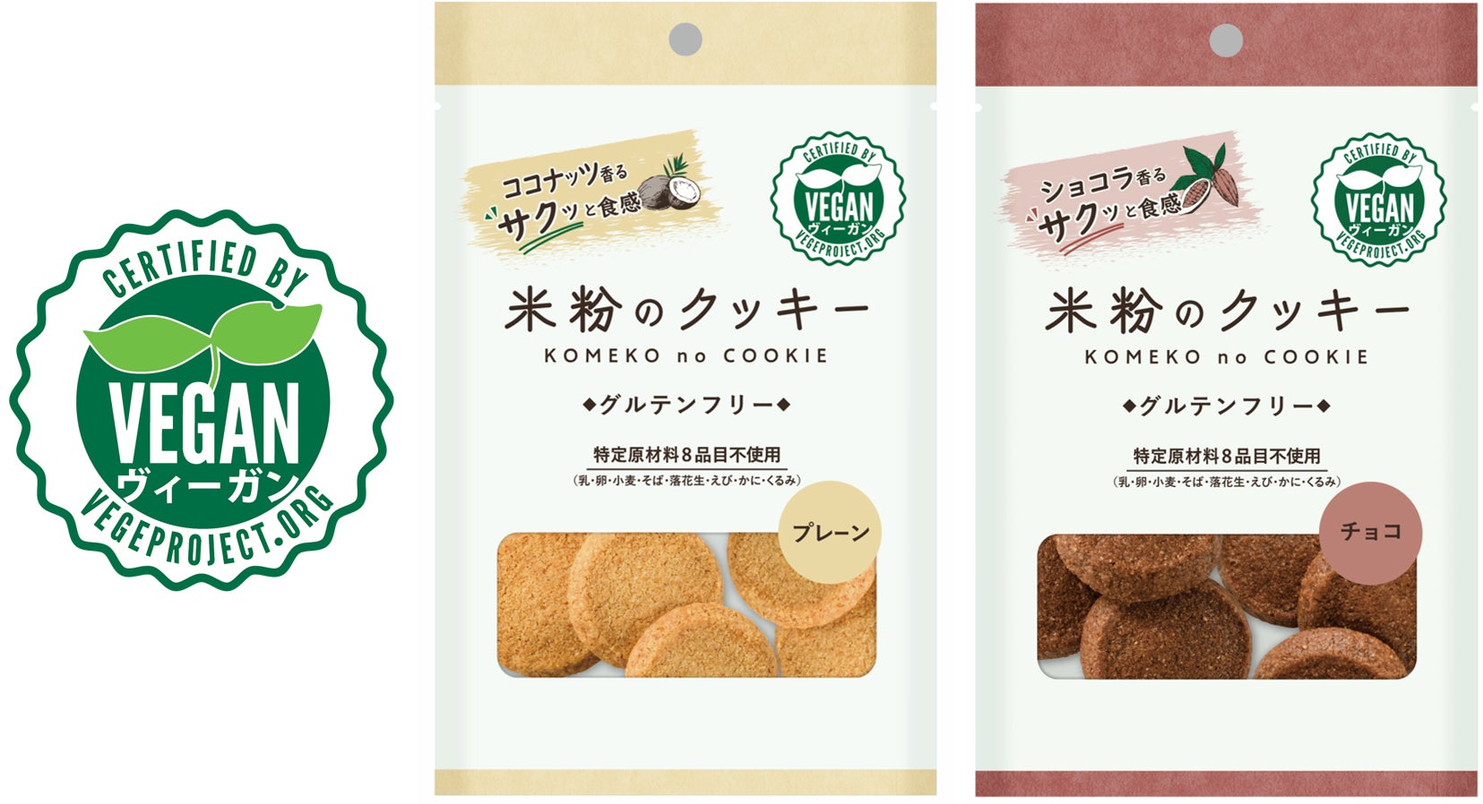 メロディアン株式会社(本社 大阪府八尾市、社長 中西優紀雄)は、ヴィーガン認証を取得し、パッケージをリニューアルした「米粉のクッキー」を発売致します。