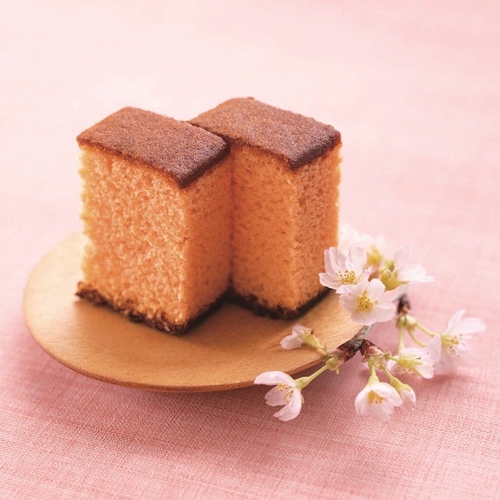 淡い桜色と桜花の香りが春らしい季節限定のカステラ。
