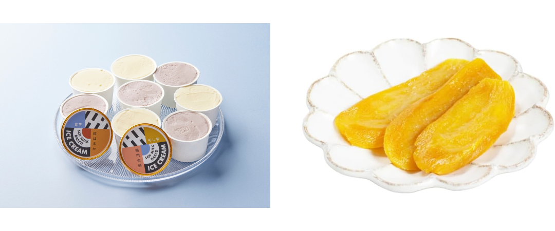 ●「芋國屋No,1⼲し芋とさつまいも⾖乳ジェラート(2フレーバー各2個の4個セット)