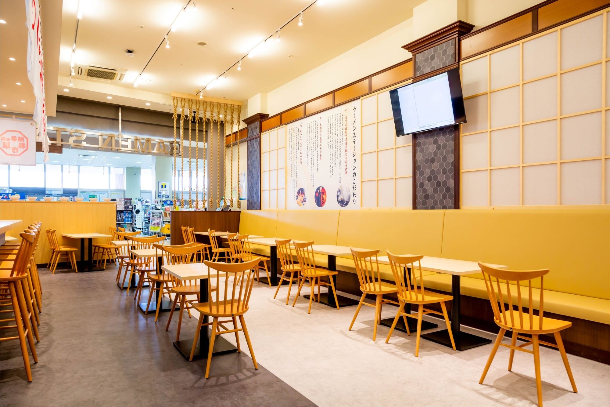 また、テーブル席を多数設けているため家族連れの方はもちろん、ゆっくりと1人で味わいたいお客様のためのカウンター席もご用意しており、誰でも気軽に立ち寄ってラーメンを楽しめる空間となっています。