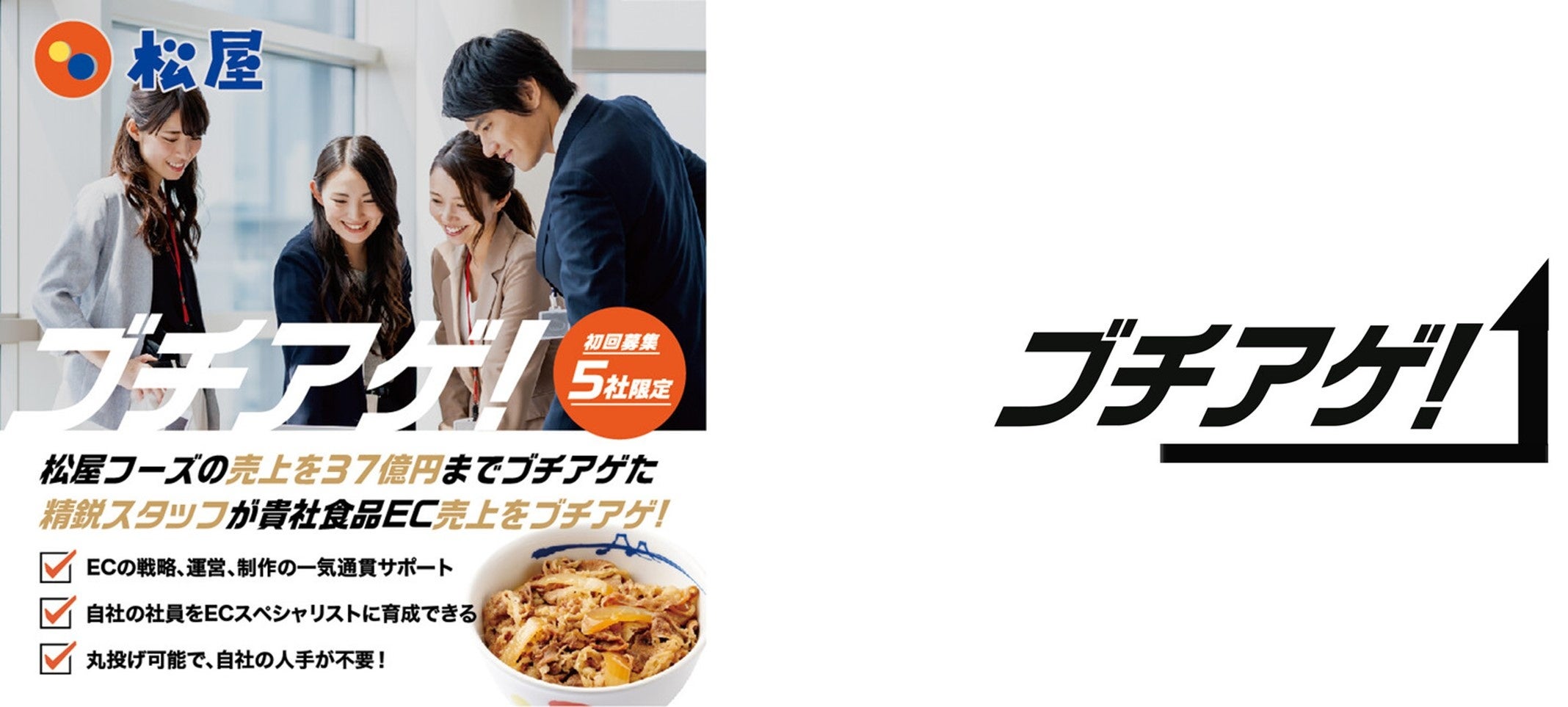 松屋フーズでは、2023年4月より、楽天市場、ヤフーショッピング、アマゾン等のECモールで月商2,000万円以上を目指す企業様向けに、『売上UPプログラム付ECモール運営受託サービス「ブチアゲ!」』を開始しております。
