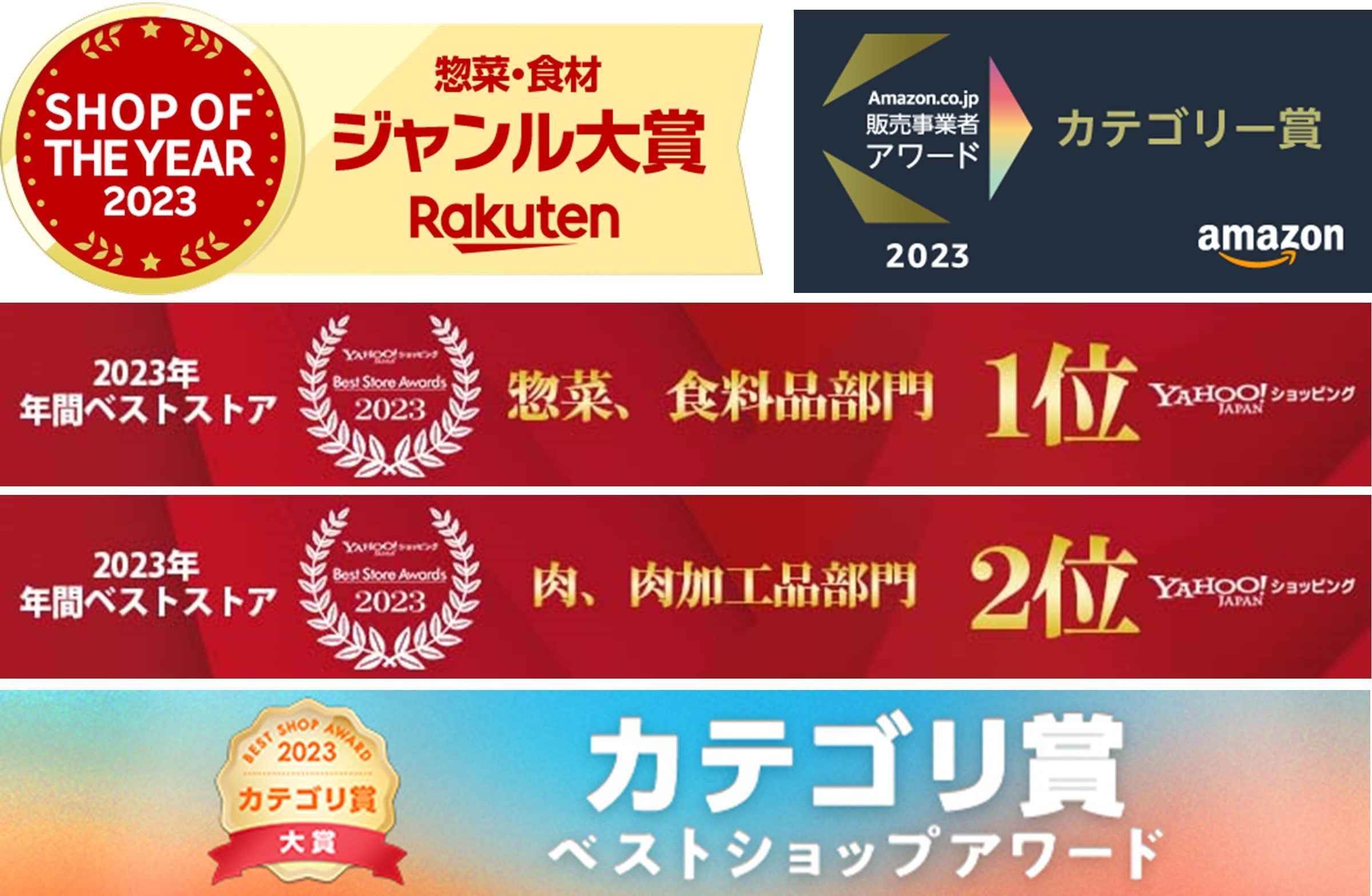 ・Yahoo!ショッピングBest Store Awards2023(惣菜、食料品部門1位・肉、肉加工品部門 2位)
