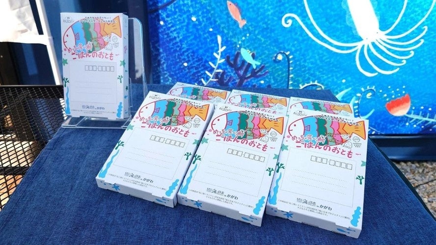 香川県はタコ好きが多く、タコの消費量が多い地域ですが、「マダコ」の漁獲量は2008年をピークに5分の1程度に激減。その問題解決に迫るべく瀬戸内さぬきダコ調査隊を結成。調査隊メンバーはタコの生態や伝統的漁法・食文化などを、体験を通じて学び、漁獲量が減っている理由を調査し、今後、漁獲量を増やしていくにはどうしたらいいか、海の環境を守るためには何が大事なのか、意見を出し合いました。その学びを活かし、広く発信するためレシピ開発に挑戦しました。食物連鎖のバランスを保つためにタコを捕食し増えている「マダイ」を使い、子どもたちのアイデアを基に鯛のほぐし身を使用したレシピ「めっちゃ食べ鯛 ごはんのおとも」を開発しました。そして、安岐水産・ねこ海レストランとの共同開発によりオリジナルパッケージの完成を経て、販売に至りました。