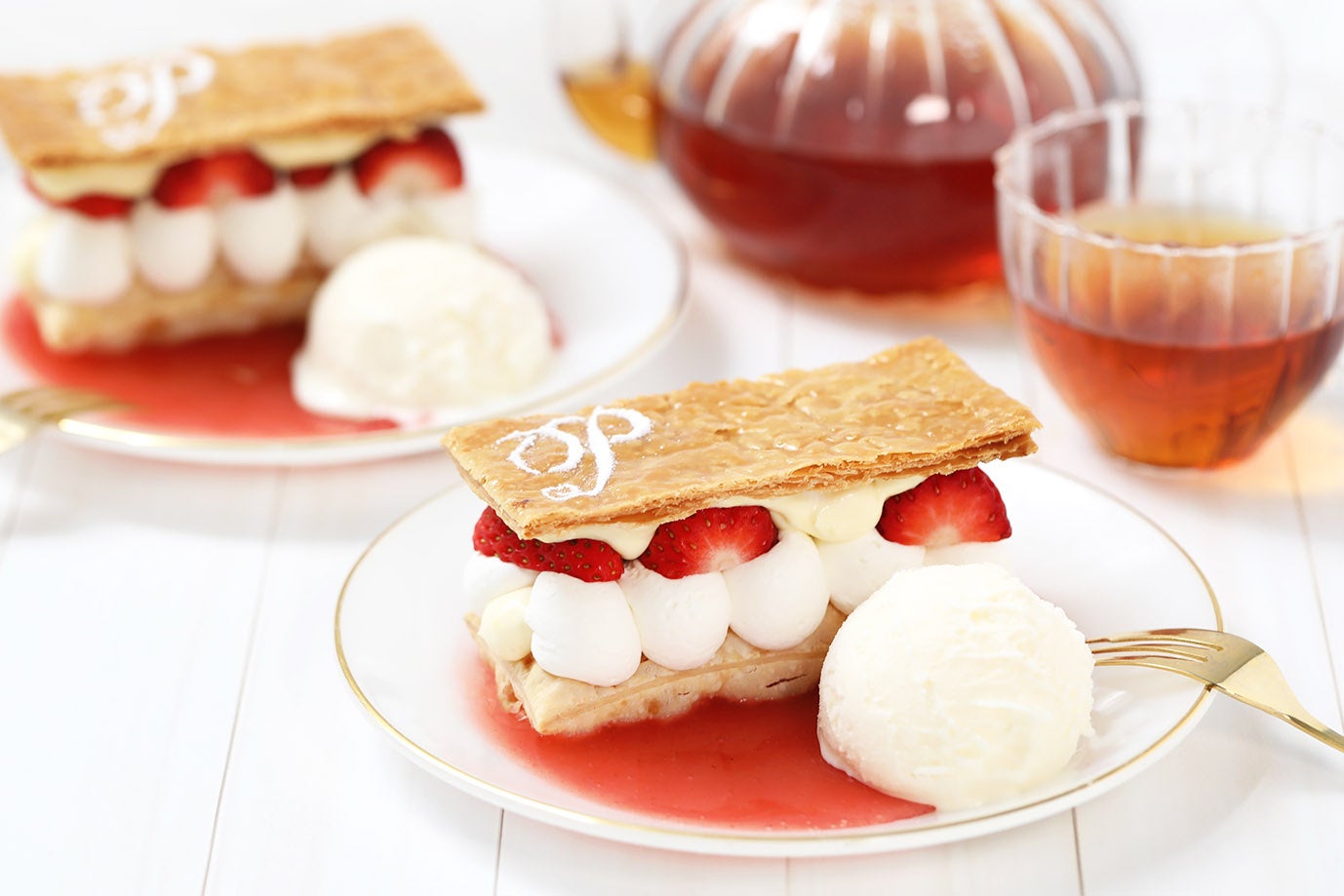 こ だ わ り:カフェ限定メニューの『ミルフィーユ Melody』と「ピネード」がセレクトした紅茶のペアリングを