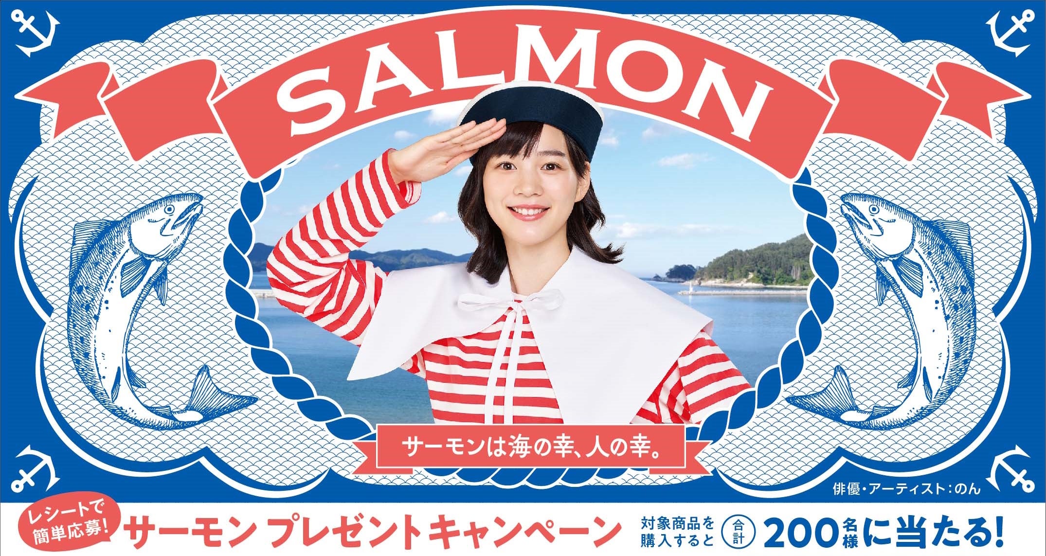 キャンペーンのイメージ・キャラクターには、昨年度に引き続き俳優・アーティストとして活躍するのんさんが登場、「サーモンは海の幸、人の幸。」のメッセージとともにニッスイの養殖サーモン類をPRし、水産売場を盛り上げます。