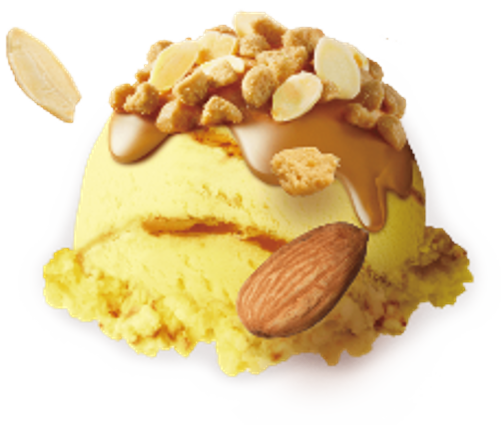 アーモンドやクッキー、ソースと混ぜて食べた時の満足度を高める、コク深い味わいのキャラメルアイスクリームです。隠し味にバタースカッチ※2を加えることで、コクと濃厚感をアップしました。