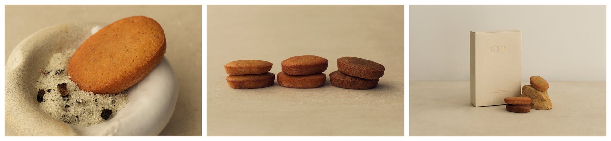 シェフ田村が手がける焼き菓子ブランド「ETEL」のフィナンシェ。バターのふくよかな香りとシチリア産のアーモンドをたっぷりと使用したリッチな味わい、潤いのあるしっとりとした食感が特長です。バニラトンカ、マーガオ、キャラメルウーロンの3フレーバーを一度に楽しめるセットで販売します。