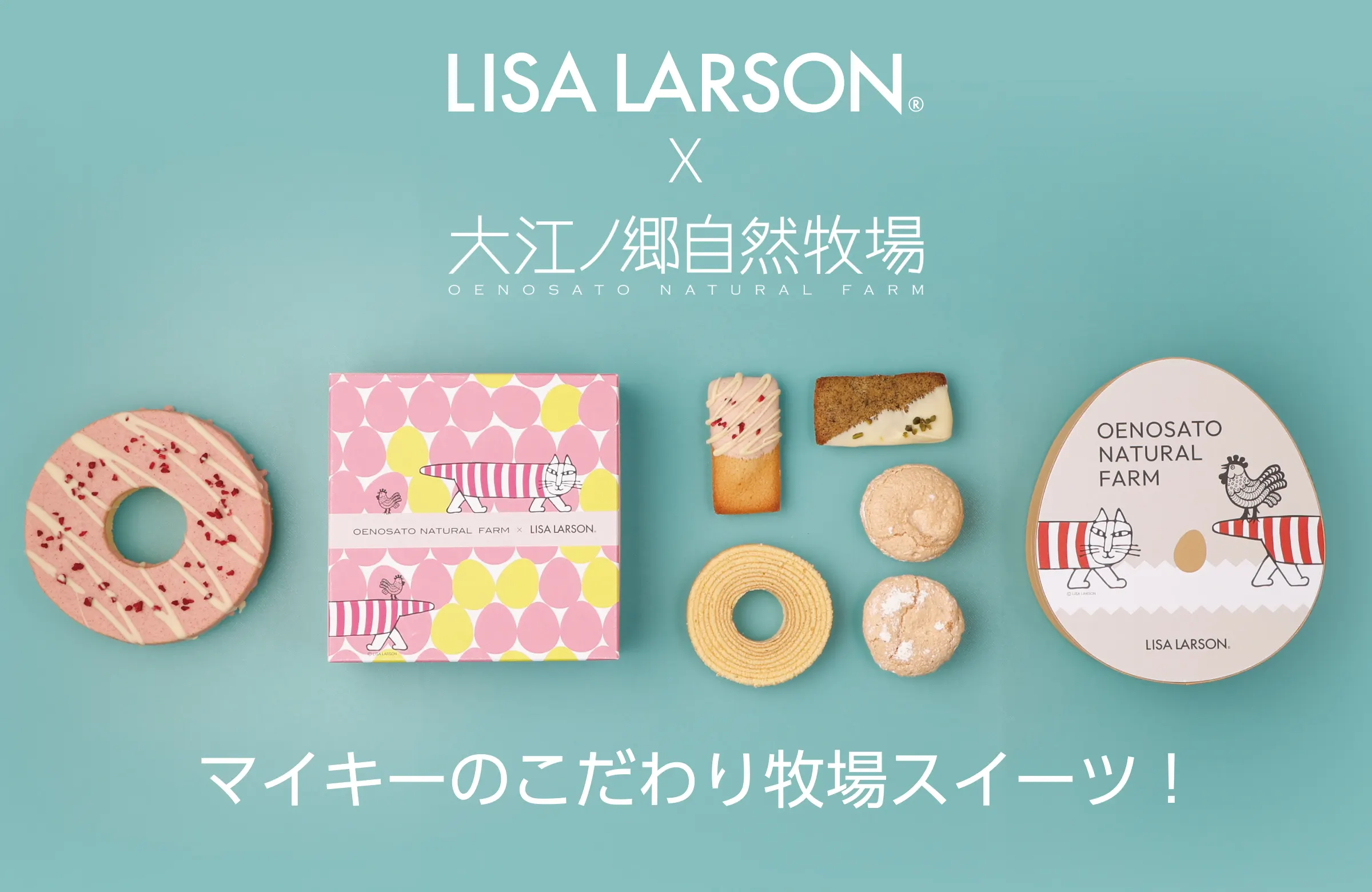 鳥取県八頭郡に位置する大江ノ郷自然牧場は、1994年からニワトリを自然本来の姿で平飼いで育てている牧場です。自然の中でのびのびと育ったニワトリの卵と国産素材の使用にこだわった牧場スイーツと、リサ・ラーソンのコラボレーションが実現しました!