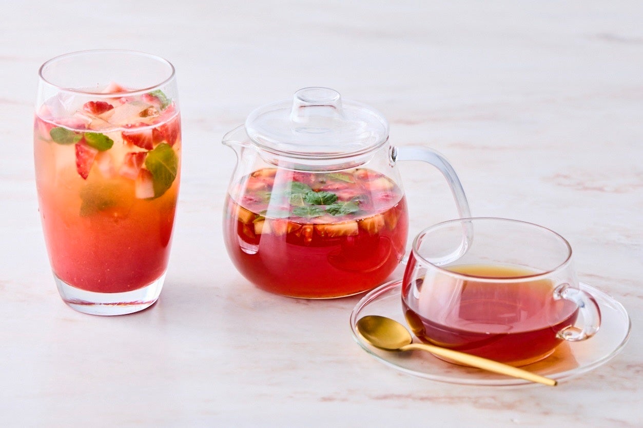 ストロベリーとマスカットのフレーバーティーに、フレッシュなストロベリーとミントの香りを加えた爽やかな味わいのホットティーです。