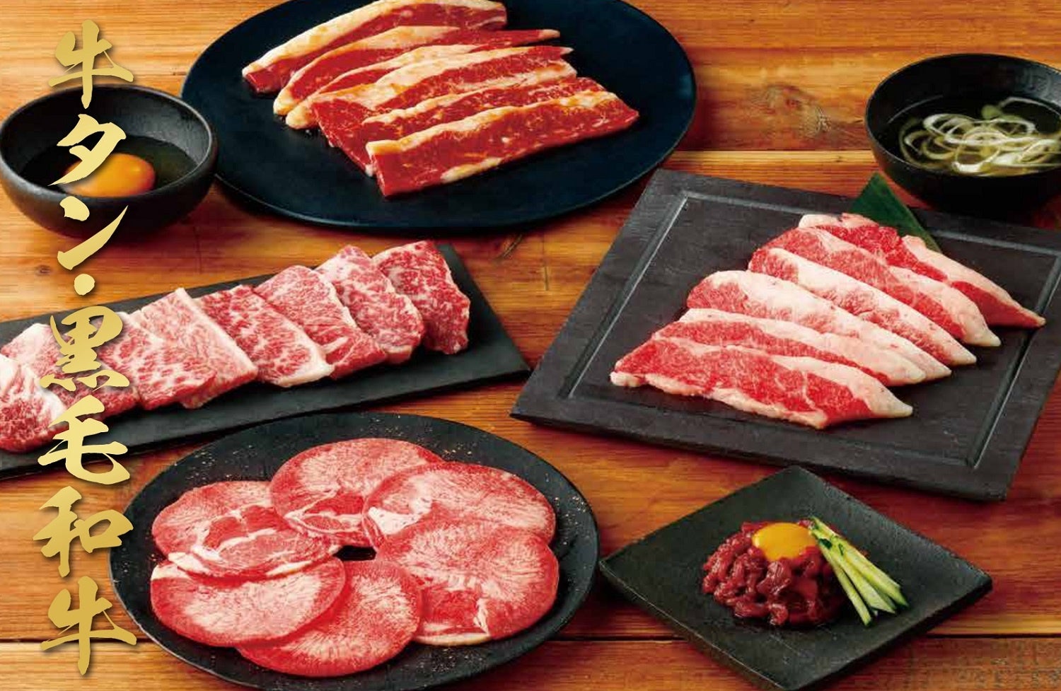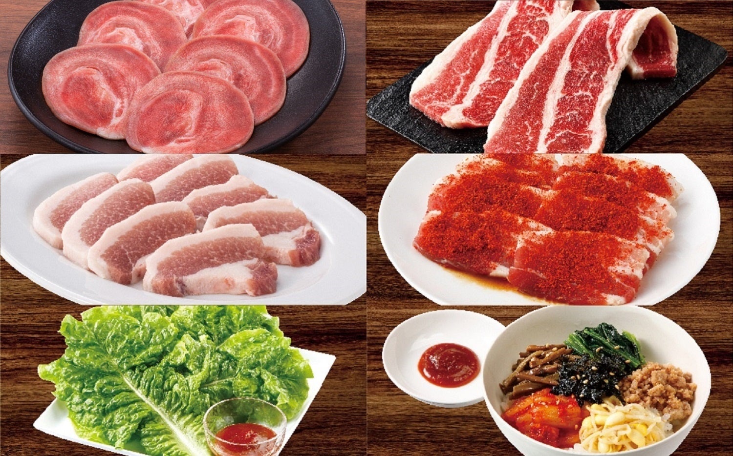 タン塩【豚】や脂がのったとろカルビ、創作焼肉のはちみつ黒胡椒焼きやチーズチキンバジルなどが食べ放題。