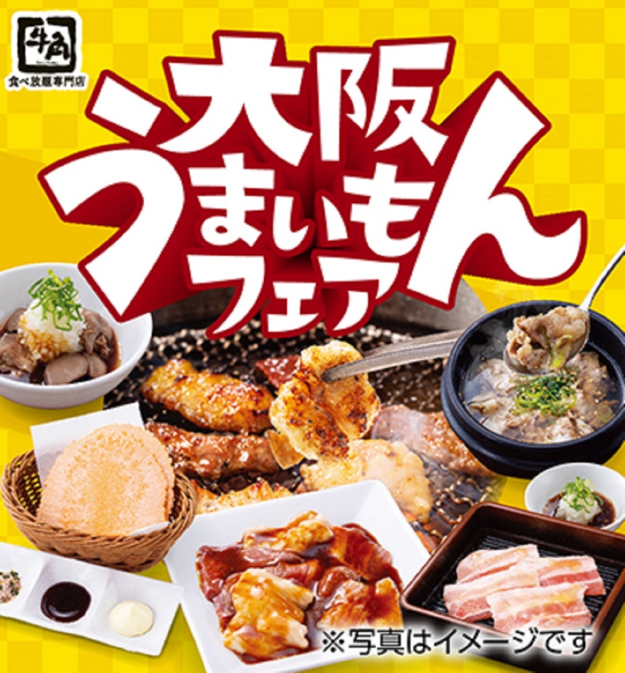 2024年5月5日(日)までの期間限定で、大阪うまいもんフェアを開催中です。牛角コース以上をご注文で、ホルモンや肉吸いなど全6種のメニューが楽しめます。