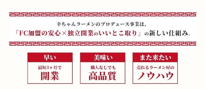 加盟店募集において、『加盟金・保証金・ロイヤリティ 0円~(諸条件有り)』とし、ラーメン事業に取り組みたい方々が開業を実現しやすいパッケージとしております。店舗では職⼈に頼らずクオリティの高い商品提供が可能です。これは、麺やスープなどの食材を、自社グループ内の工場で熟練した職⼈の手により、一括生産することでコスト削減を行いながら、店舗では職⼈に頼らず一定の商品品質を保つことができます。また、創業より「博多一幸舎」がこれまで培った経験をもとに厨房設計、機器、各種備品などについても、顧客満足はもとより、従業員の利便性や経営効率など幅広い視点でのアドバイスを提供いたします。