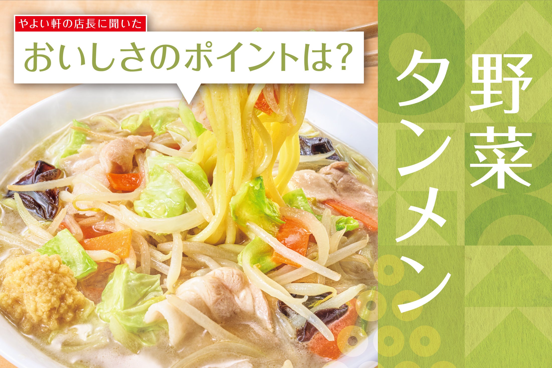 このたび「やよい軒」では3月19日(火)より販売している『野菜タンメンとから揚げの定食』のおすすめポイントを全国の店長にアンケート調査いたしました。商品を購入する際には、どんな商品か気になる方も多いのではないでしょうか?店長のおすすめポイントからその美味しさを解明していきます。