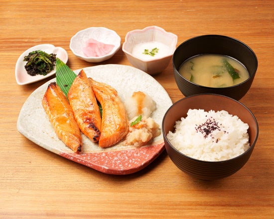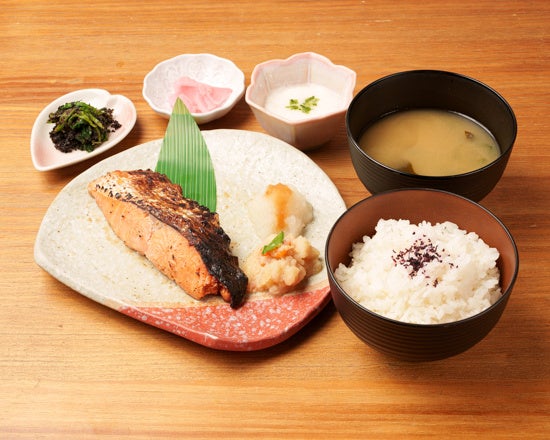 鮭のふっくら西京焼き定食 Plump salmon grilled in Saikyo set meal