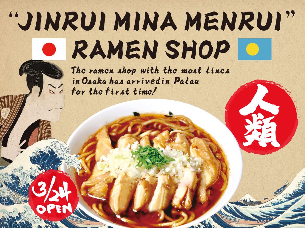 大阪行列No.1ラーメン店「人類みな麺類」を運営するUNCHI株式会社(本社:大阪市淀川区、代表取締役:松村貴大)は、世界複合遺産である「ロックアイランド」をはじめ、限りなく美しい海に囲まれながら一日を過ごすことのできる場所が多くある、南太平随一の観光地「パラオ共和国」にて、日本時間の24日(日)10時に「人類みな麺類 Palau」と「人類みなSWEETS」をグランドオープンいたしました。