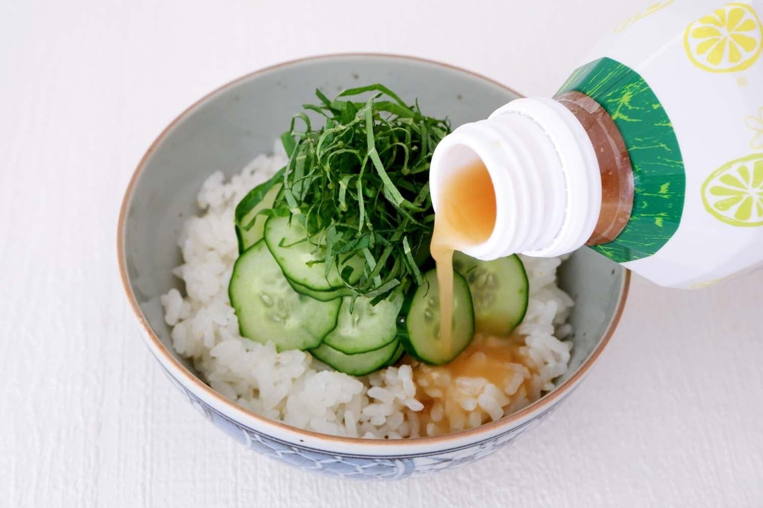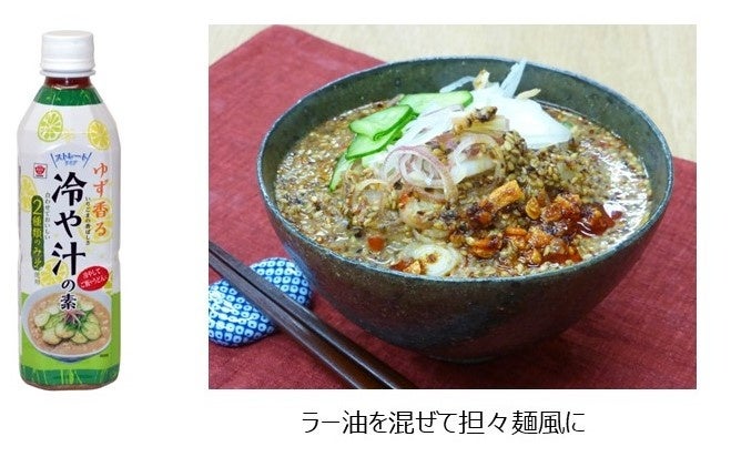 その後、もっと便利に簡単に作ることができるような商品が欲しいというお客様の声にお応えし、冷蔵庫でそのまま冷やし、ご飯にサッとかけるだけで美味しい冷や汁を作ることができるペットボトル入りの「ゆず香るストレート冷や汁の素」の発売を開始し、現在では1シーズンに約18万個を出荷するシリーズ品となりました。
