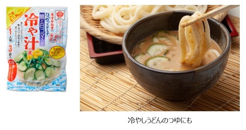 “冷や汁”とは、味噌仕立ての冷たいだし汁をご飯にかけ、きゅうりやみょうが、大葉などをのせて食べる料理で、食欲の落ちる暑い日でもさっぱりと食べることができる料理です。夏バテ対策として、また多忙で朝食を摂る時間が無いという方にもおすすめします。温かいご飯にそのままかけて食べるペットボトル入りストレートタイプと水に溶かせて作る濃縮タイプの2種展開です。