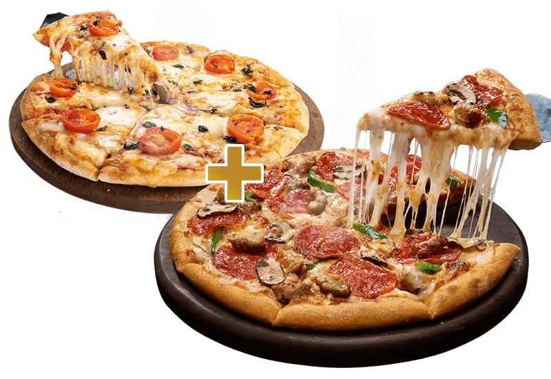 ①【デリバリー限定】ピザ1枚買うと、お好きなピザが1枚10円(クーポン番号:405020)