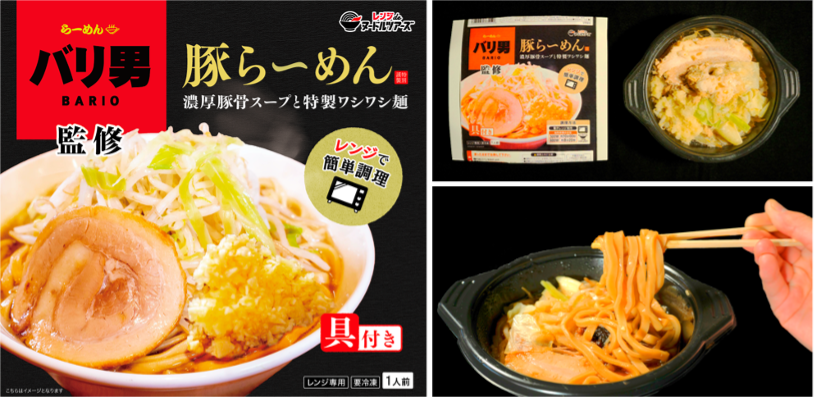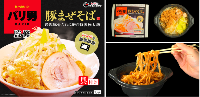 第一弾としてリリースする二郎系の「豚らーめん」「豚まぜそば」は、都内に複数店舗をかまえる大人気の二郎インスパイア系ラーメン店「らーめんバリ男」が監修。濃厚豚骨だれに絡む特製麺が特徴の一杯です。