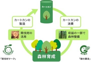 カートカンは、当社の前身であるポッカコーポレーションが業界に先駆けて1996年より採用している紙製の飲料容器で、間伐材を含む国産材を30%以上使用しています。商品を通じて日本の森林育成を応援できるほか、売上の一部が森林の整備にあてられており、飲むことで気軽にエコ活動ができます。