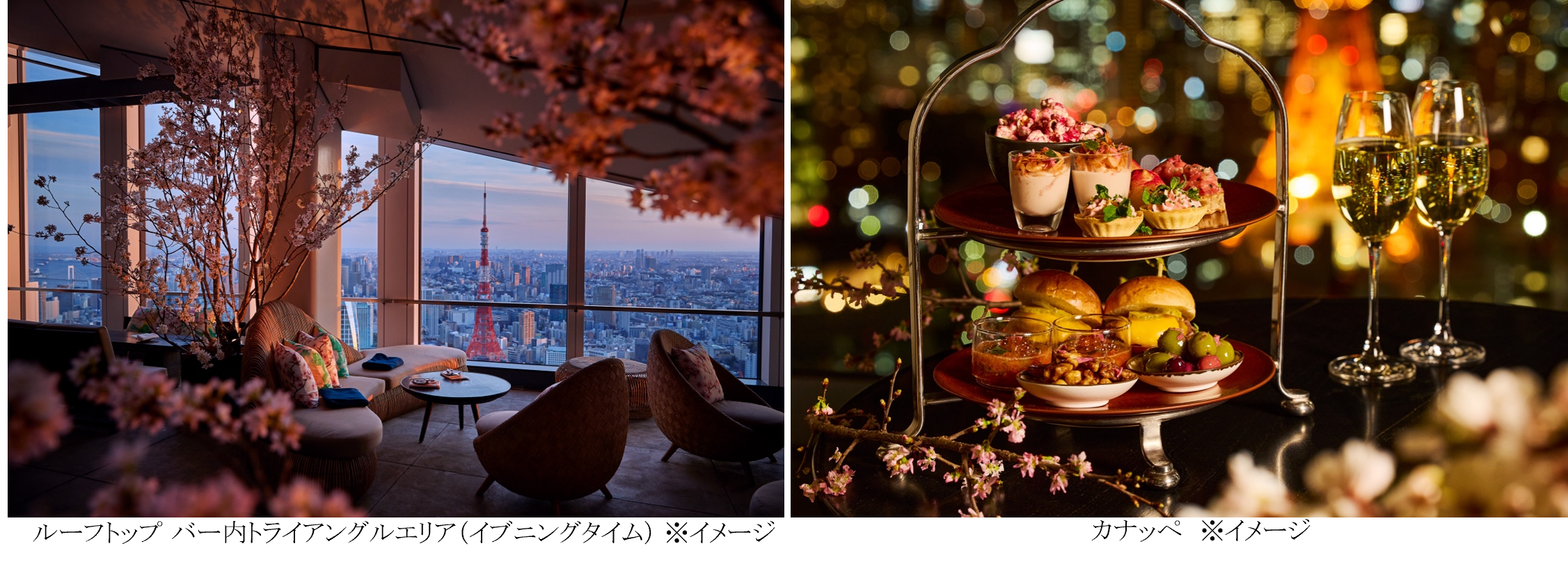 地上約250mの高層階から眺める東京の夜景と、咲き誇る夜桜とともにシャンパーニュを愉しむ 「夜桜プレミアムビュープラン」