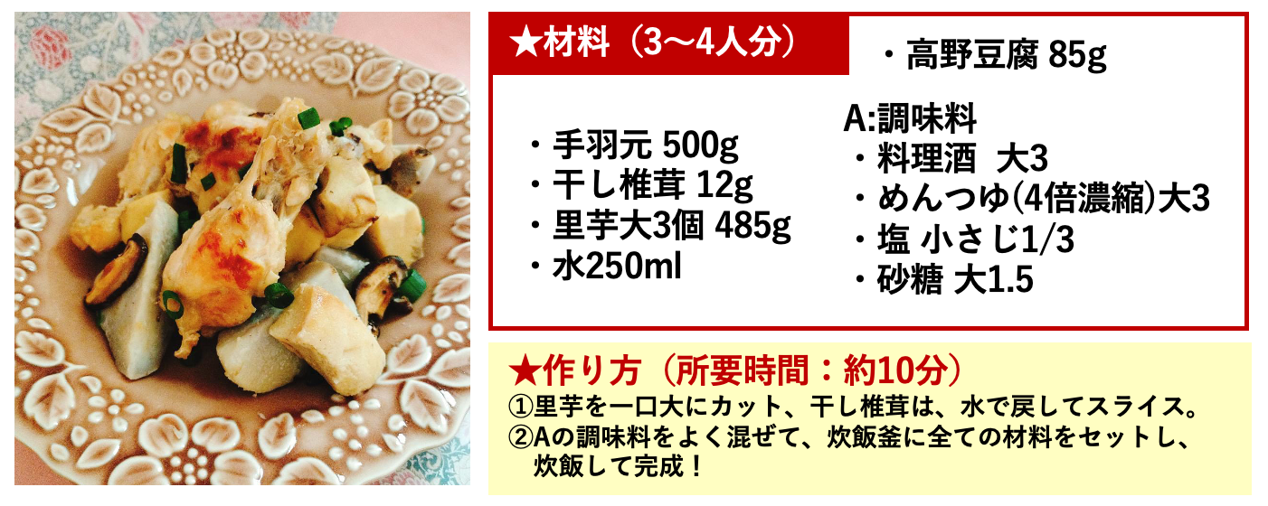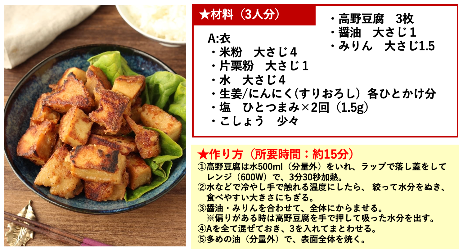 こうや豆腐を使ったオリジナルレシピ「しみじみレシピ」。