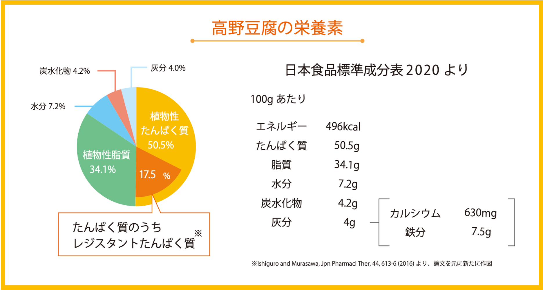 ※「高野豆腐」の名称は、食品表示基準では「凍り豆腐」と定められていますが、般的には「こうや豆腐」や「しみ豆腐」の呼び名でも親しまれています。