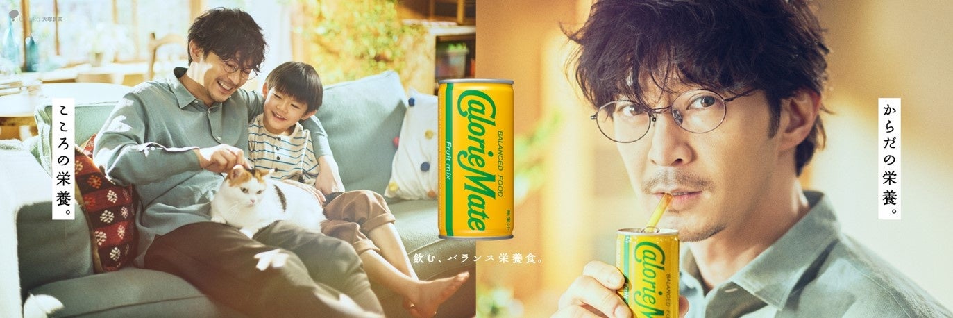 リモートワークも日常となり、多様なワークスタイルが定着した現代。育児と仕事の両立のためのワークスタイルを選択する方も増えてきました。CMの主人公は、育児にも仕事にも、一生懸命な父親です。本作では、充実しつつも慌ただしく過ぎていってしまう日常で、カロリーメイト リキッドを飲んだり、飼い猫とたわむれることで自身の“栄養”を補給していく様子を描いています。5大栄養素をバランスよく摂取することができる「からだの栄養」としてのカロリーメイト リキッドと、一緒に遊ぶひとときが疲れを癒す「こころの栄養」である愛猫。からだもこころも労りながら、毎日を乗り切る父親を津田健次郎さんが、そんな父親の様子を達観した表情で見守る愛猫の声を井上和彦さんが演じています。