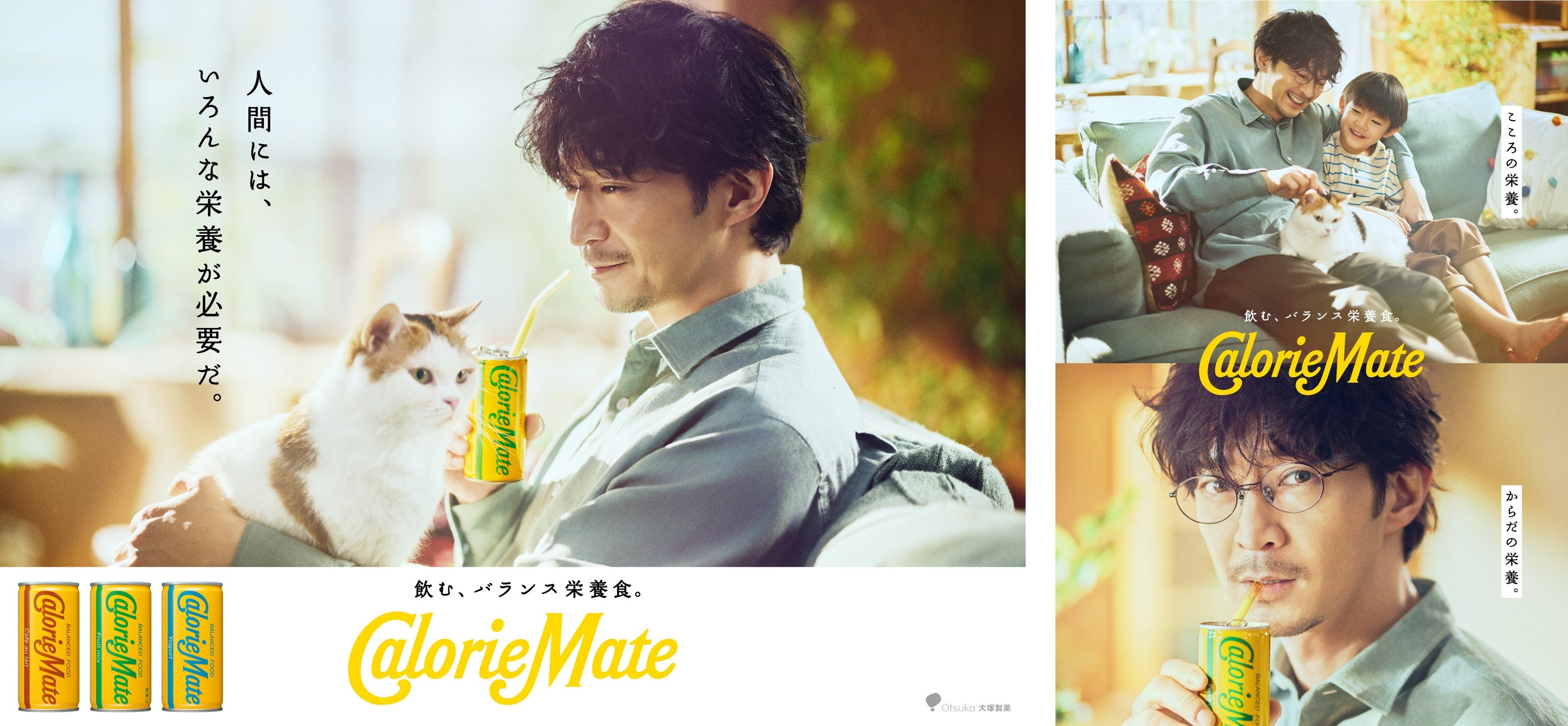 カロリーメイト リキッドは、仕事やプライベートで充実した毎日を送るために、行動したり考えたりと前向きに頑張る人々に寄り添ってきました。今回のTVCMでは、声優・俳優の津田健次郎さんを起用するとともに、昨年放映の第1弾『吾輩は栄養である』に引き続き「こころの栄養」として「猫」が登場。リモートで仕事をしながら子どもとのふれあいや自分を癒す時間も大切にする父親を描きます。