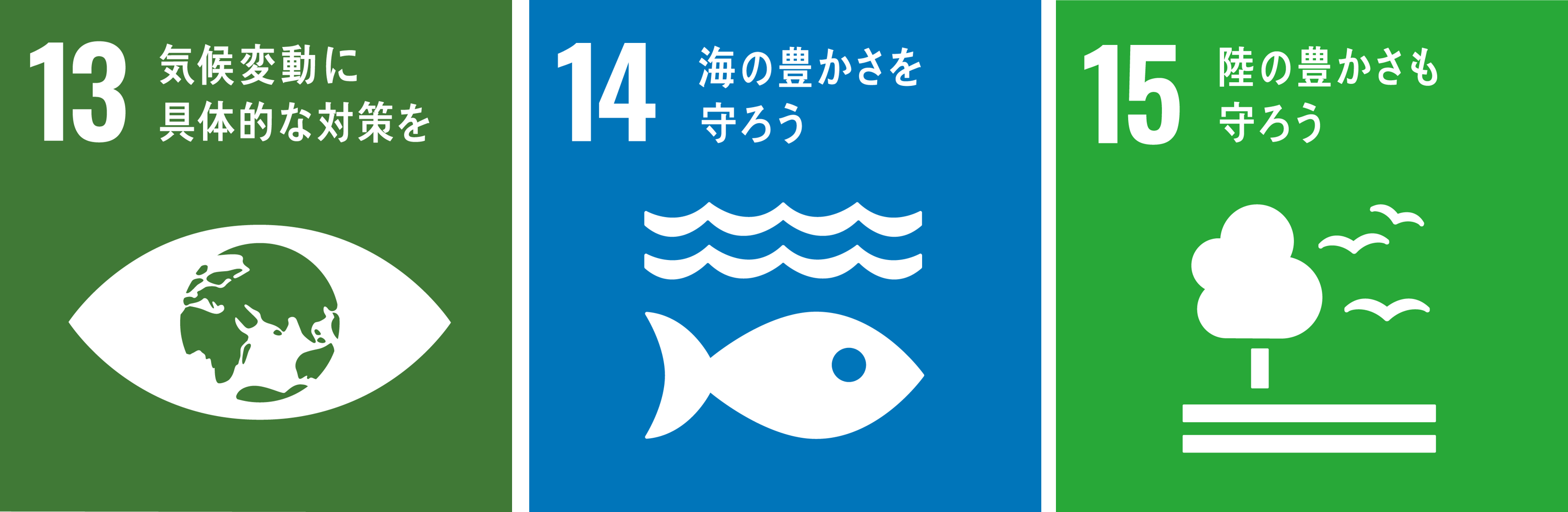 13.気候変動に具体的な対策を / 14.海の豊かさを守ろう / 15.陸の豊かさも守ろう
