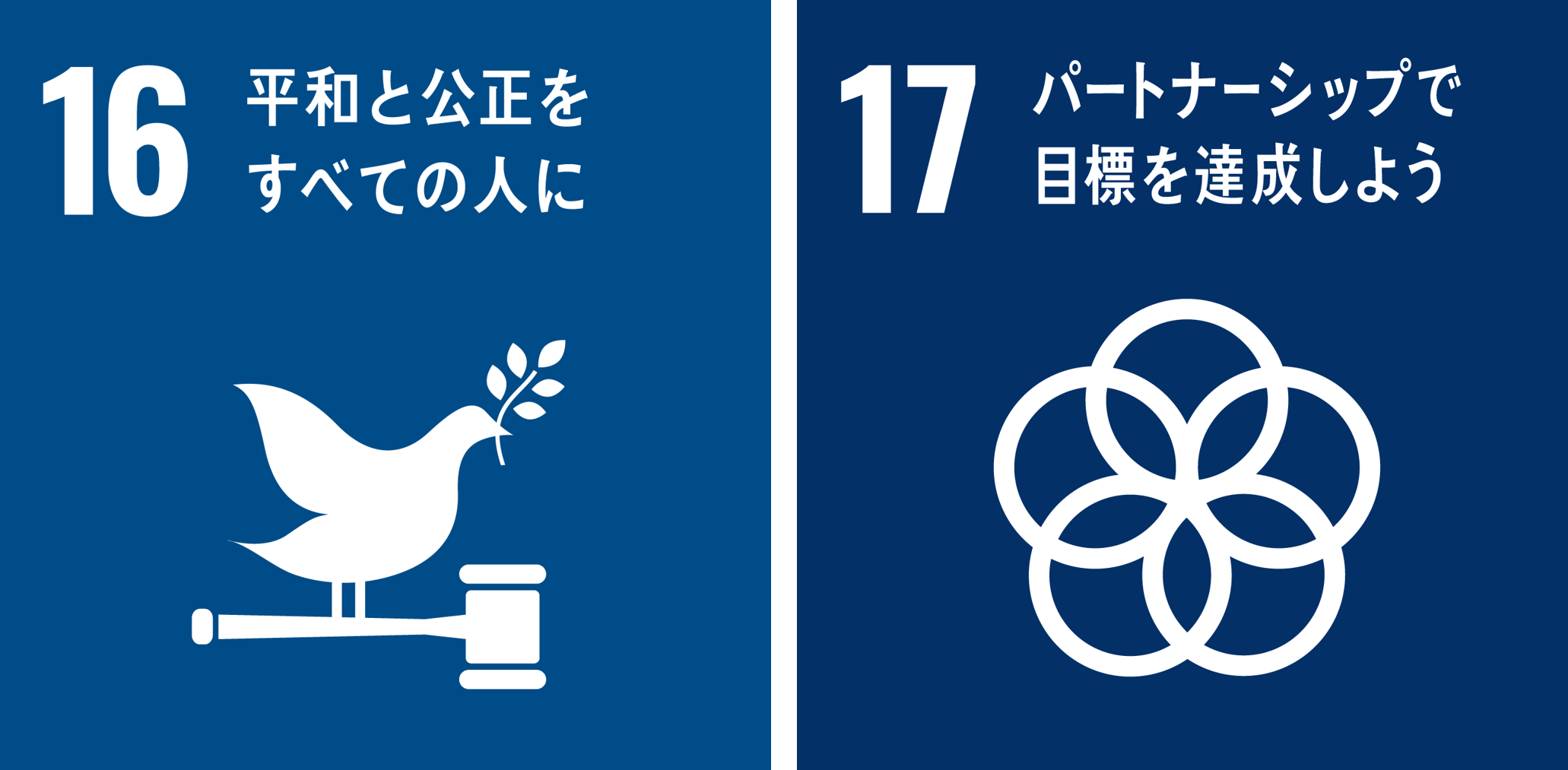 16.平和と公正をすべての人に / 17.パートナーシップで目標を達成しよう