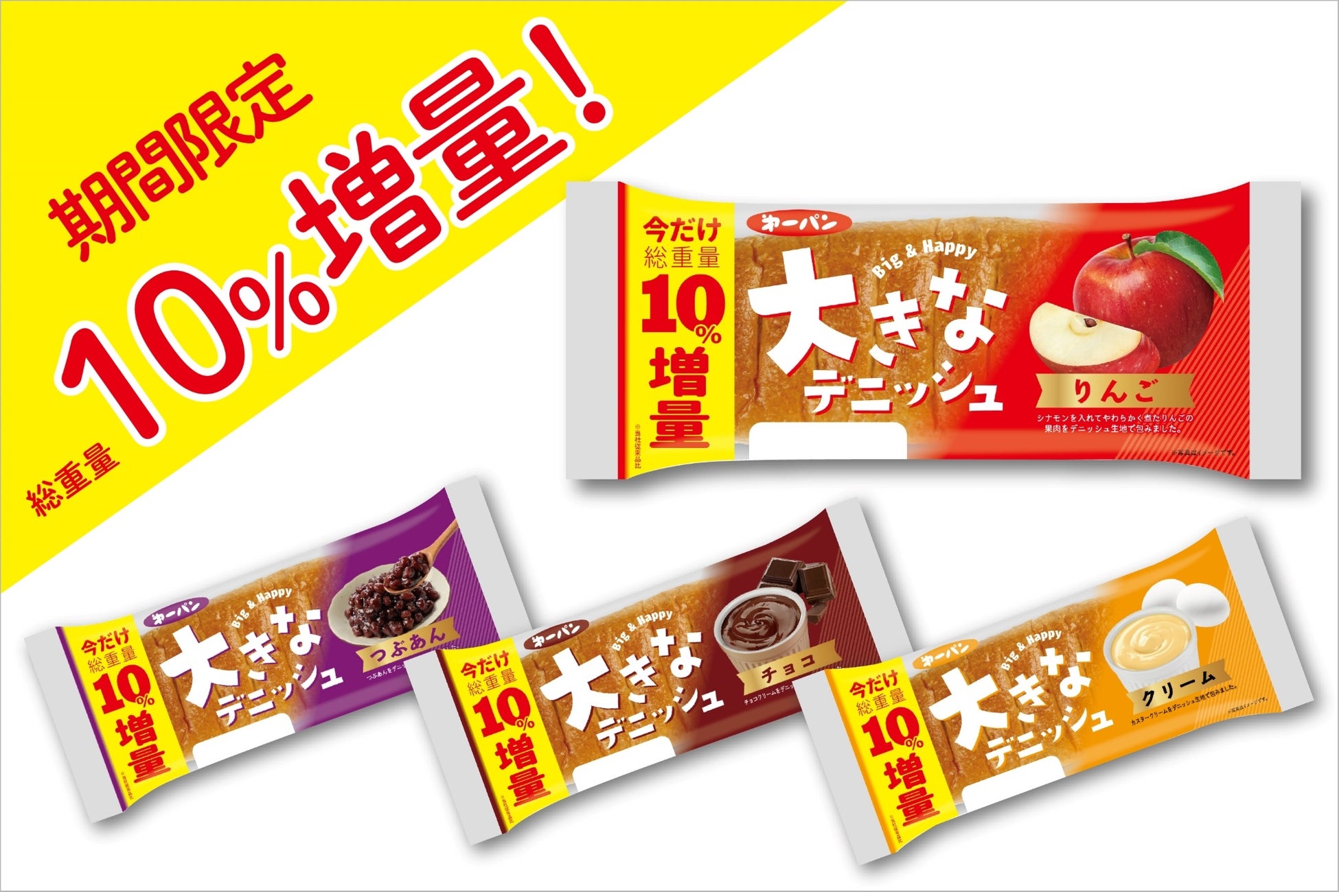 期間限定で、『大きなデニッシュ』シリーズの対象商品の製品総重量を10%増量いたします。