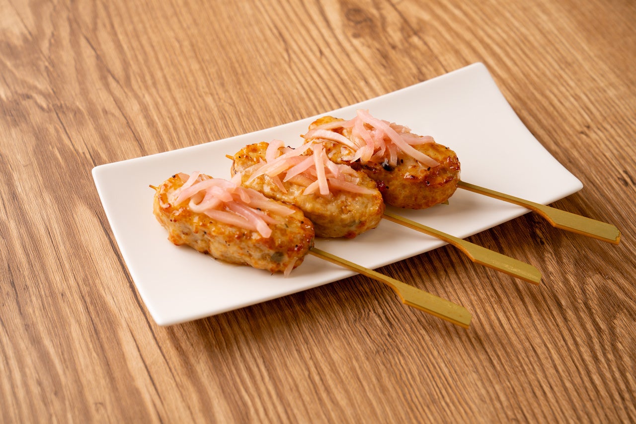 ジューシーな森林どりのつくねに、ハマケイ特製の塩ダレと、岩下の新生姜を乗せ、旨みを感じながらも、さっぱりとお楽しみいただけます。