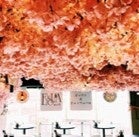 店内で桜を楽しめる「お花見ワインバル」を開催中です。天井一面が満開の桜で埋め尽くされ、天候や気温を気にせずにゆっくりと桜を楽しめるので宴会の幹事も安心です。