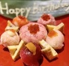 歓送迎会のサプライズとして、「寿司ケーキ」をご用意。甘いものが苦手な方にも喜ばれる、寿司居酒屋ならではの逸品です。名前や簡単なメッセージを添えることも可能で、主役の方に感謝の気持ちや歓迎の言葉を伝えることができます。